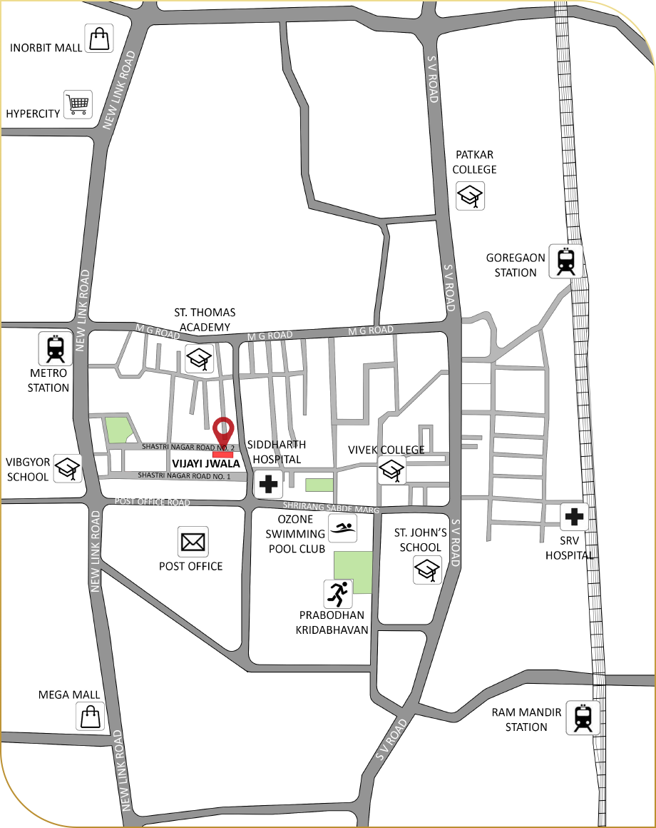Imagine a life in the heart of Goregaon, the most buzzing and bustling neighbourhood in the western suburbs. Where you are just a few minutes away from every landmark, convenience, and comfort. Where you reinvent your lifestyle at Goregaon’s iconic 22 storey project with 1 wing. Where you enjoy your time at exclusive 1 & 2 BHK homes replete with key amenities and facilities. It’s time to own this fabulous life at Vijayi Jwala, Goregaon’s fantastically located residential project.