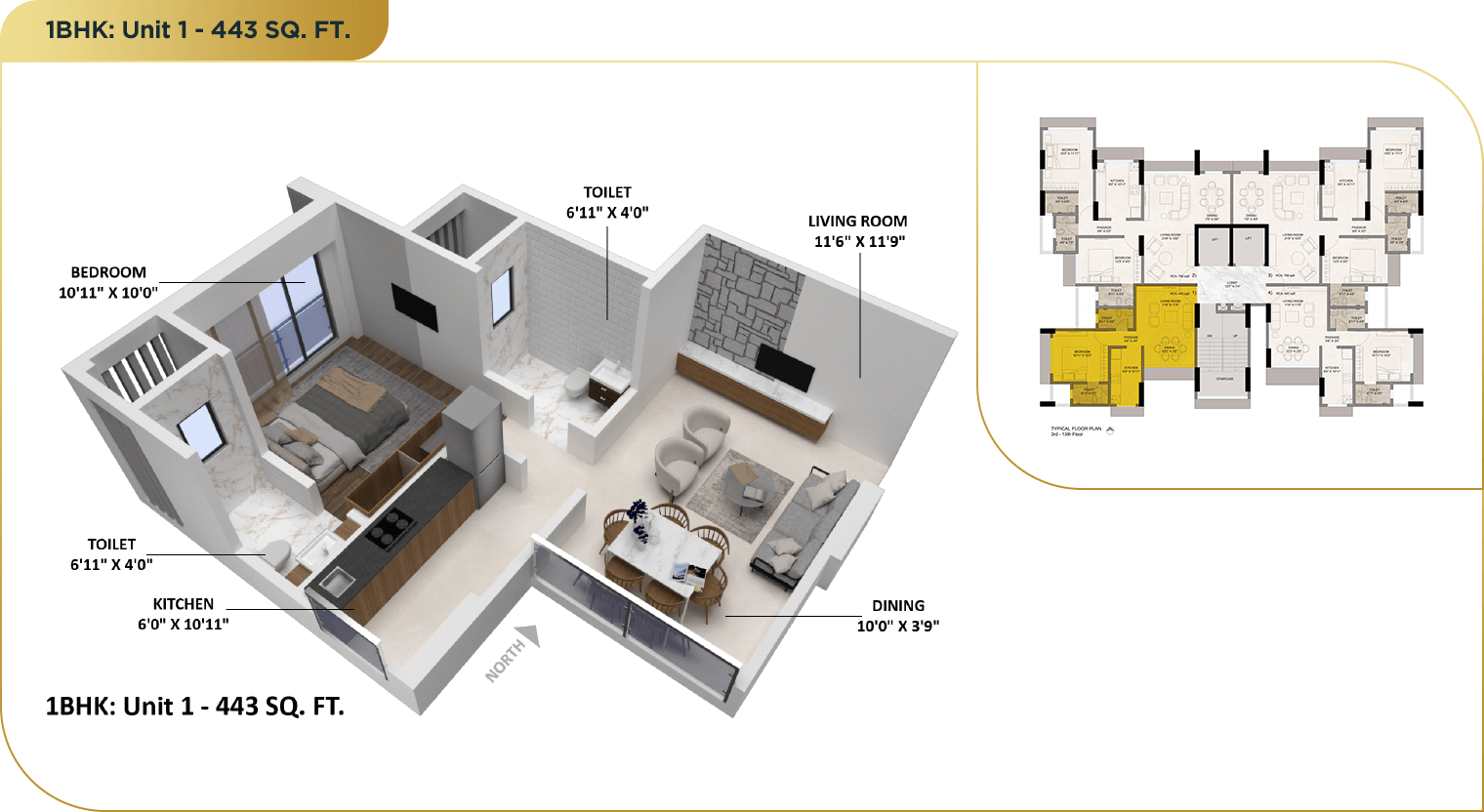 Disclaimer: All the images, pictorials, visuals, elevation, perspectives, illustrations, model, specifications, plans, designs, drawings, dimensions, maps, facilities, amenities, features and other information / details herein are conceptual, indicative and for representation purpose only and are not to scale to be entered into between the parties. The intending purchasers are advised to use their discretion in relying in the information/ details/ amenities described shown herein. Conditions Apply*